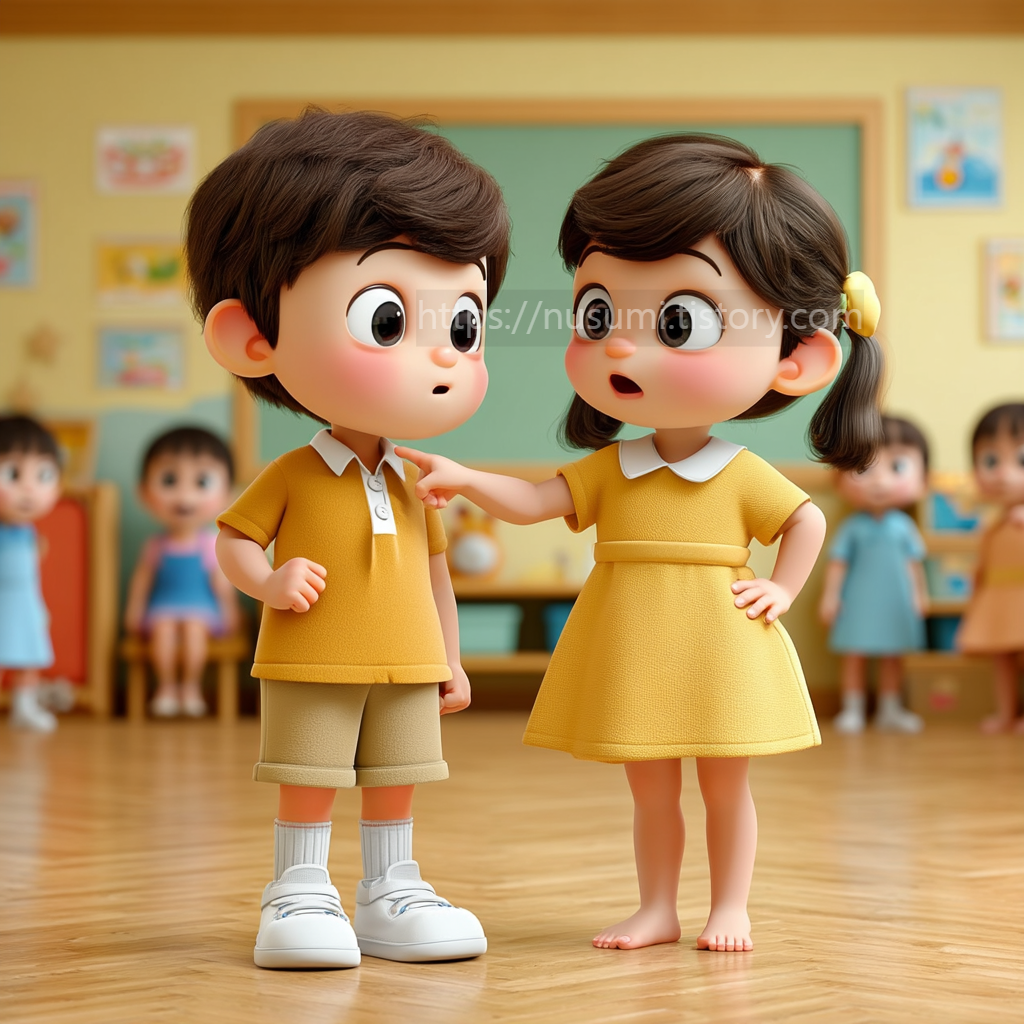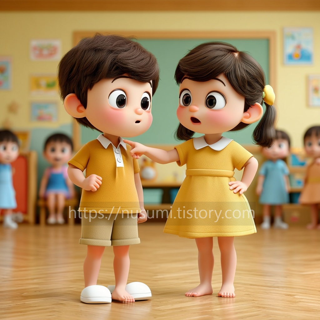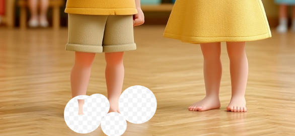 저번 동화책 삽화 중에 하나입니다. 두 친구 모두 맨발이 나와야 하는데 한 친구만 맨발이 나왔어요. 두 친구가 다 맨발이 나올 때까지 이미지를 뽑아봤지만 한 사람만 맨발이거나 둘 다 신발을 신은 이미지가 생성이 되었었고 또 저는 이 그림이 제일 마음에 들어서 어떻게 고쳐서든 이 이미지를 사용하고 싶었기도 했어요. 사실 이게 제일 큰 문제죠. 욕심ㅎ 그래도 제가 어떻게 기능을 활용해서 맨발이 나오게 했는지 알려드릴게요.