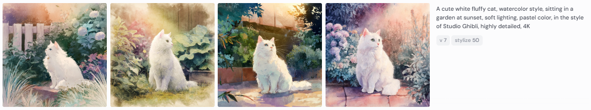 미드저니는 AI 이미지 생성 툴 중에서도 프롬프트에 따라 결과물이 완전히 달라지는 서비스입니다. 같은 주제라도 어떤 단어를 조합하느냐, 얼마나 구체적으로 입력하느냐에 따라 결과물 퀄리티는 천차만별입니다. 단순히 ‘토끼’라고 넣을 수도 있지만, ‘귀여운 둥근 얼굴의 흰색 토끼, 수채화 스타일, 부드러운 조명, 동화 풍경 속’이라고 하면 훨씬 더 만족스러운 이미지를 얻을 수 있습니다.